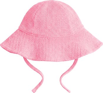 This cheerful candy pink crinkle toddler sunhat features a wide brim that’s extra long in the back for added sun protection, plus ties to keep it snug and secure. Crafted from our signature crinkle fabric in vibrant colors, it pairs perfectly with matching swimsuits for a lively, coordinated outfit.