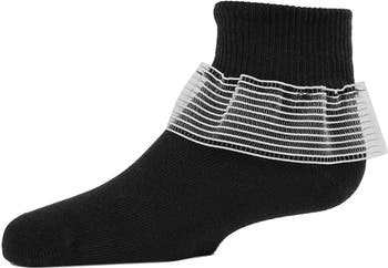 Essential for achieving happy feet. Made from a soft and stretchy ribbed cotton knit, and designed with comfortable seams, a hand-linked toe, and delicate lace detailing.