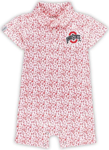 Gear up your youngest fan with this Ohio State Buckeyes Polo bodysuit from Garb. It features an embroidered team logo over an all-over pattern. The snap closure at the bottom makes it easy to put on, perfect for getting your kiddo ready for the next Ohio State Buckeyes game.
