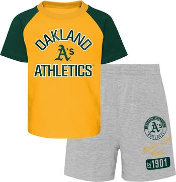 Keep your kiddo's love for the Oakland Athletics strong by grabbing them this Ground Out Baller set. It includes a T-shirt with roomy raglan sleeves and shorts that adjust to their perfect size. Best of all, the distinct Oakland Athletics graphics on both pieces make for a spirited outfit.