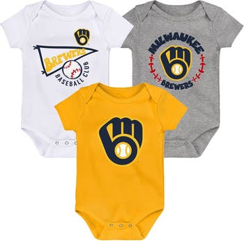 Infant Gold/White/Heather Gray Milwaukee Brewers Biggest Little Fan 3-Pack Bodysuit Set
