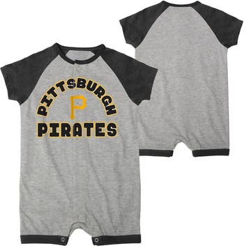 Infant Heather Gray Pittsburgh Pirates Extra Base Hit Raglan Full-Snap Romper