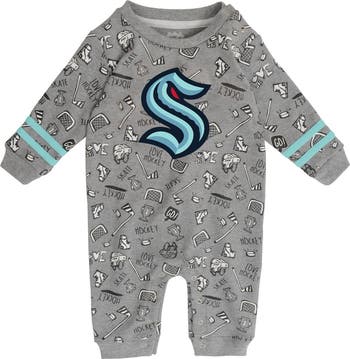 Bring your little one into the Seattle Kraken fold with this Gifted Player romper. It features sleeve stripes that match the Seattle Kraken logo printed on the front and a fun hockey pattern all over. In addition, the snaps at the top and bottom make changing much easier.