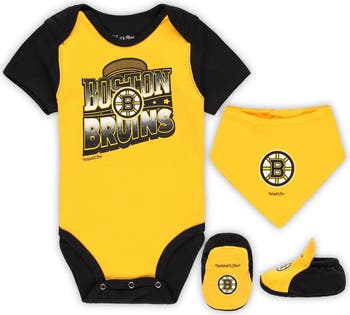 Infant Mitchell & Ness Gold/Black Boston Bruins Big Score 3-Pack Bodysuit, Bib and Bootie Set