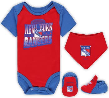 Infant Mitchell & Ness Red/Blue New York Rangers Big Score 3-Pack Bodysuit, Bib and Bootie Set
