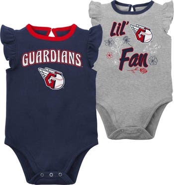 Help the newest Cleveland Guardians fan in your home show that they're ready for every inning by grabbing this Little Fan bodysuit set. This two-pack set features charming Cleveland Guardians graphics and cute ruffled sleeves. Plus, the three snaps allow for quick and easy dressing.