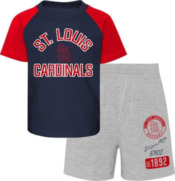 Keep your kiddo's love for the St. Louis Cardinals strong by grabbing them this Ground Out Baller set. It includes a T-shirt with roomy raglan sleeves and shorts that adjust to their perfect size. Best of all, the distinct St. Louis Cardinals graphics on both pieces make for a spirited outfit.