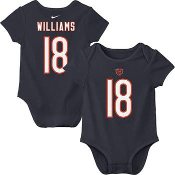 Introduce your little one to the excitement of the Chicago Bears with this Nike Caleb Williams Player Name & Number Bodysuit. This soft cotton onesie features a lap shoulder neckline for easy on and off, as well as a three-snap bottom closure for quick diaper changes. Let your little one rep their favorite player and team in ultimate comfort and style with this must-have Chicago Bears bodysuit.