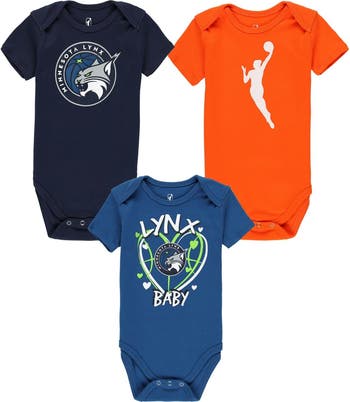 Welcome the newest fan to the Minnesota Lynx family with this adorable Outerstuff Infant Slide Home 3-Piece Creeper Set. Made from 100% cotton, these creepers are gentle on your little one's skin while still letting them rep their favorite WNBA team. This adorable three-piece set makes it easy to show off your family's Minnesota Lynx pride from the moment they arrive.