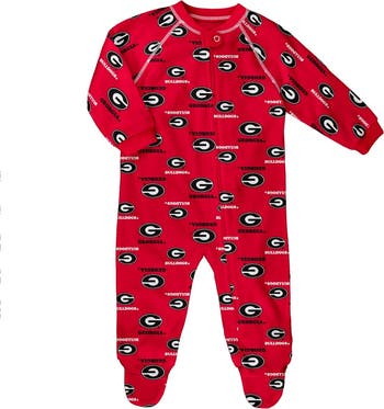 Introduce your favorite little fan to the Georgia Bulldogs with this All-Over Print Raglan Full-Zip Coverall from Outerstuff. The raglan sleeves and flatlock stitching ensure your little one stays comfy, and the full-length zipper and snap closure at the neck make changes a breeze. Plus, the all-over print featuring team logos lets them show their new love for the Georgia Bulldogs.