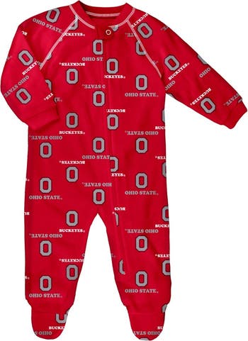 Introduce your favorite little fan to the Ohio State Buckeyes with this All-Over Print Raglan Full-Zip Coverall from Outerstuff. The raglan sleeves and flatlock stitching ensure your little one stays comfy, and the full-length zipper and snap closure at the neck make changes a breeze. Plus, the all-over print featuring team logos lets them show their new love for the Ohio State Buckeyes.