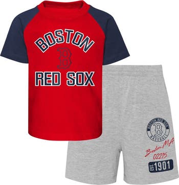 Keep your kiddo's love for the Boston Red Sox strong by grabbing them this Ground Out Baller set. It includes a T-shirt with roomy raglan sleeves and shorts that adjust to their perfect size. Best of all, the distinct Boston Red Sox graphics on both pieces make for a spirited outfit.