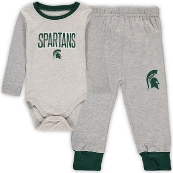 Infant Wes & Willy Heathered Gray/Green Michigan State Spartans Jie Jie Long Sleeve Bodysuit & Pants Set