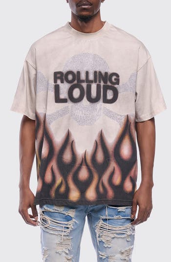 A shadowy skull-and-crossbones graphic peers out above the flames on this all-cotton T-shirt that's comfortably relaxed.