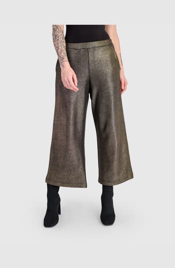 Metallic knit gives these pants flexible comfort and subtle sheen. A relaxed straight leg complements the contoured fit through the hip. The cropped length pairs easily with boots or sneakers. Finished with a smooth pull-on waistband and practical pockets.