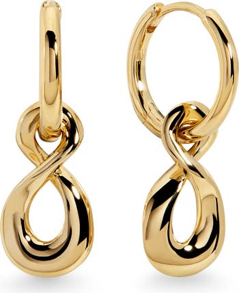 Sculptural infinity sign drops put a fresh spin on forever in these handcrafted huggie hoop earrings.