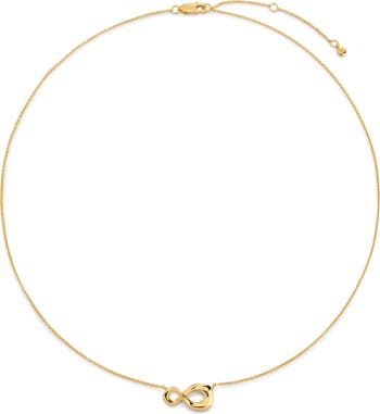 This handcrafted necklace puts a fresh spin on forever with a sculptural infinity pendant and delicate chain.