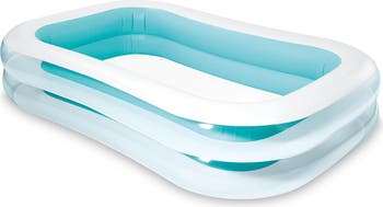 - SPLASH POOL: The Intex Swim Center Family Pool provides summer fun in the sun for 2-3 kids. MAX SPACE: Rectangular shape maximizes swimming space for ages 6 and up..