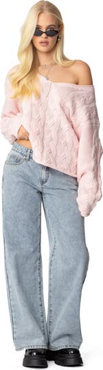 When you want to be comfy but still look put-together, cozy up in this roomy, loosely knit sweater complete with braided cables and rolled edges.
