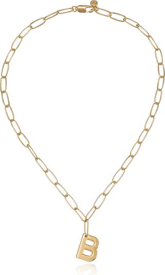 An initial charm dangles from an airy, paper-clip chain in this perfectly giftable necklace plated in 18-karat gold.