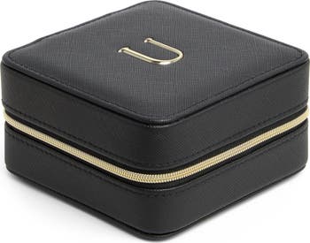 Keep rings and other jewelry secure while traveling with this zip-around case that you can personalize with an initial.