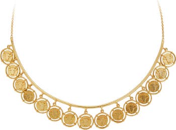 - Design: Collar necklace with coin-inspired detailing.