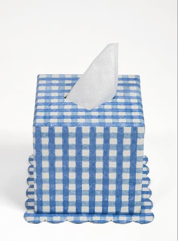 Whether it s brightening a powder room, soothing a bedside, or gifting a design-loving friend, this tissue box cover proves utility can still be utterly delightful. Expertly block-printed by our artisans in Jaipur, the artisans are stewards of a craft that has been passed down to them generation after generation. From the master block makers who carve the blocks in a village to the hands that print the cloth, there are many hands that go into making each piece. By selecting this handmade piece, you contribute to reviving craft and supporting artisan communities. Thank you for supporting our artisans. Hand blockprinted by artisans on 100 cotton fabric Dimensions: 5.5" H, 5.5" L, 5.5" W This item is available for pre-order and will ship out May 10, 2026.