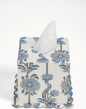 Whether it s brightening a powder room, soothing a bedside, or gifting a design-loving friend, this tissue box cover proves utility can still be utterly delightful. Expertly block-printed by an eighth-generation family of artisans in Jaipur, the artisans are stewards of a craft that has been passed down to them generation after generation. From the master block makers who carve the blocks in a village to the hands that print the cloth, there are many hands that go into making each piece. By selecting this handmade piece, you contribute to reviving craft and supporting artisan communities. Thank you for supporting our artisans. Hand blockprinted by artisans on 100 cotton fabric. Dimensions: 5.5" H, 5.5" L, 5.5" W This item is available for pre-order and will ship out May 10, 2026.