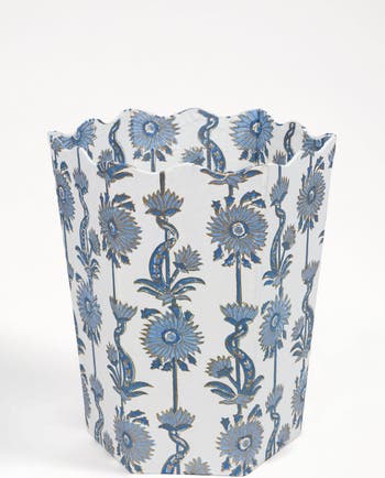 Floral Vines Blockprint Scallop Waste Bin Storage Bin