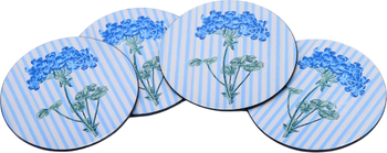 Our blue hydrangea coasters are crafted by hand and finished with coats of lacquer, hand polished between each coat. Natural lacquer, derived from the sap of the lacquer tree, is applied in thin layers. We work with a small workshop to create these heirloom pieces. This is a beautifully gift boxed set of 4. Hand-crafted by artisans Material: Lacquer and wood Dimensions: 4" x 4" inches