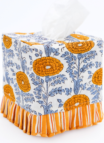 Whether it s brightening a powder room, soothing a bedside, or gifting a design-loving friend, this tissue box cover proves utility can still be utterly delightful. Expertly block-printed by our artisans in Jaipur, the artisans are stewards of a craft that has been passed down to them generation after generation. From the master block makers who carve the blocks in a village to the hands that print the cloth, there are many hands that go into making each piece. By selecting this handmade piece, you contribute to reviving craft and supporting artisan communities. Thank you for supporting our artisans. Hand blockprinted by artisans on 100 cotton fabric Dimensions: 5.5" H, 5.5" L, 5.5" W This item is available for pre-order and will ship out May 10, 2026.