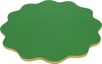 Add an elegant touch of charm to your table with our scalloped lacquerware placemats in a vibrant garden green lined with a gold edge. These placemats combine timeless sophistication with modern durability, featuring a smooth lacquered finish that's as practical as it is beautiful—easily wipe away spills and crumbs with a damp cloth. Hand-crafted by artisans Material: Lacquer and wood Dimensions: 14.17" x 14.17" inches