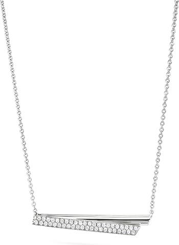 The artistry of bespoke tailoring is reimagined in this bar pendant necklace crafted from 18-karat white gold and illuminated by stunning pavé diamonds.