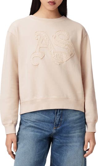 A tonal raw-edge logo appliqué details the front of this oversized sweatshirt made of supersoft, breathable cotton.