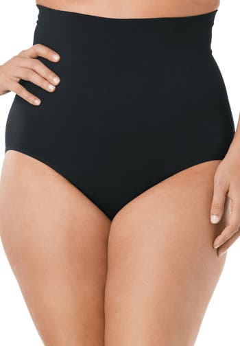 Instant Shaper Medium Control Seamless High Waist Briefs by Secret Solutions Curvewear provides shaping, smoothing and support exclusively for your curves. This medium control brief targets your waist and tummy and looks smooth under pants, skirts and dresses. You’ll love the wide, non-roll waistband and soft, allover stretch. Check out our complete Secret Solutions Curvewear Collection today.