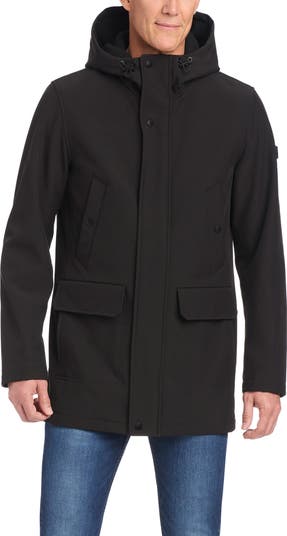 An insulated soft shell jacket is cut from high-permeability four-way-stretch fabric for enhanced breathability and mobility, while a lined hood completes the dapper, yet action-ready design.