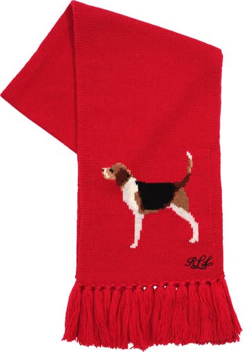 Intarsia knit with an adorable beagle and embroidered with a the brand's monogram, this cozy scarf is destined to become a cold-weather classic.