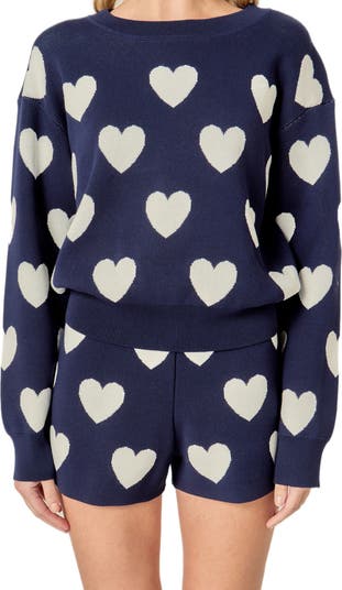 Wearing your heart on your sleeve—and everywhere else—is easy in the softness of this intarsia-knit sweater knit with a crewneck and cozy ribbed trim.