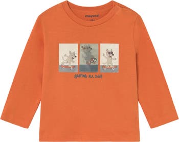 Long sleeved T-shirt for kids. Round neckline. Snap button fastening on the shoulder to allow the garment to be put on easily. Decorative elements: Print. Garment with lenticular motif from our interactive PLAY WITH collection.