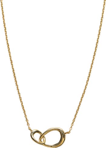 Accessorize in stunning modern style with this sterling silver necklace featuring interlocking links and lustrous 18-karat gold plating.