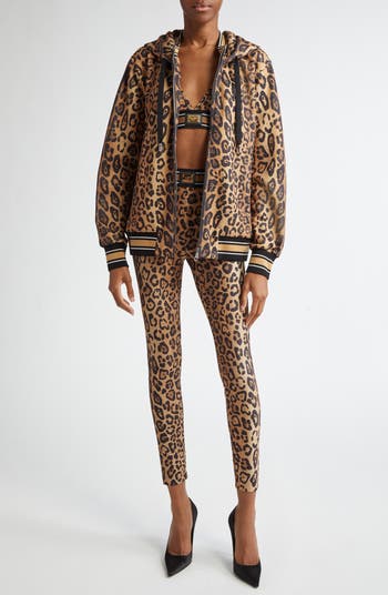 Signature plaque hardware and the leopard spots the Italian label is renowned for lend glamorous heritage touches to a zip hoodie trimmed with contrast stripes.