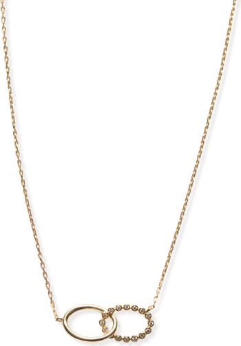 A duality of textures distinguishes the interlocking pendant on a delicate sterling silver chain necklace plated in warm 18-karat gold.