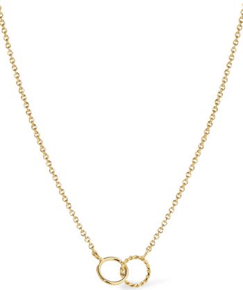 Symbolizing the eternal bond of love and friendship, this interlocking circles necklace is a timeless jewelry piece. Crafted in 100% recycled Sterling Silver and dipped in 14k gold, this dainty necklace features one ring with a smooth finish and a second ring with a subtle twisted design. Complete the look by shopping our matching Jill bracelet.