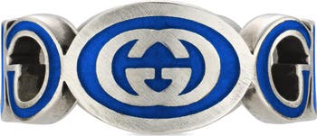 Colorful enamel emboldens this cutout sterling silver ring that spells out the Italian fashion house and is centered with iconic interlocking-Gs.