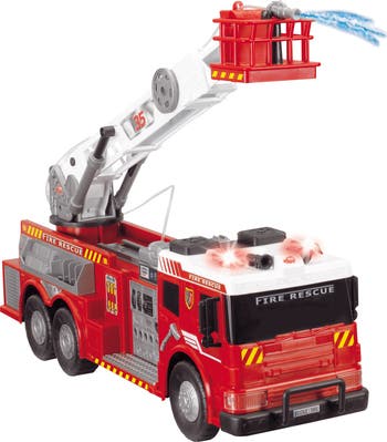 At over two feet in length, this jumbo Dickie Toys International 24 in. Fire Brigade lives up to its name. with its button-operated flashing lights, sirens, and pump-action water pump, this fire brigade provides endless hours of firefighting fun! It also features many moving parts and a variety of firefighting accessories. Two AA batteries are included so the toy fire truck is ready for play right out of the box!