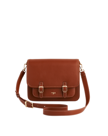 A Fable favourite, our Classic Satchel with signature bee plaque is crafted from alternative leather and is just the right size to accompany you on your everyday adventures. In a rich tan tone it features neat compartments for your essentials, two gold-toned buckles to secure everything inside and an adjustable shoulder strap to ensure it always feels comfortable. It really is a must-have masterpiece.