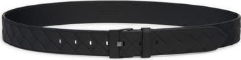 A brushed-finish buckle secures this belt crafted of calfskin leather using the Italian label's signature intrecciato construction.