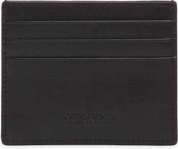 A mixed-scale version of the brand's iconic intrecciato weave—crafted from handwoven grained and smooth strips of soft calfskin leather—textures this supple card case.