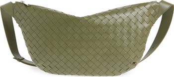 The label's intrecciato technique lends signature textures to this calfskin-leather bag crafted in a rounded silhouette with an integrated shoulder strap that easily adjusts for the perfect length.