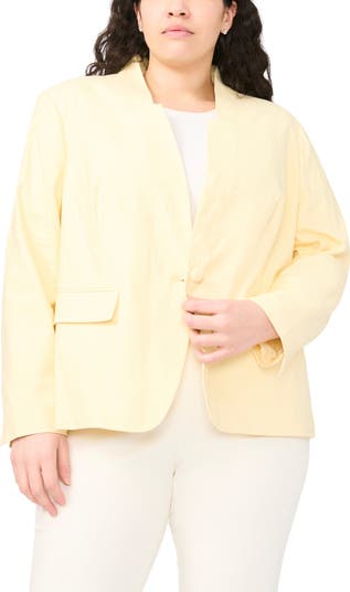 Inverted lapels enhance the sophistication of a crisp linen-blend blazer rendered in a bright pastel hue sure to brighten your workweek rotation.